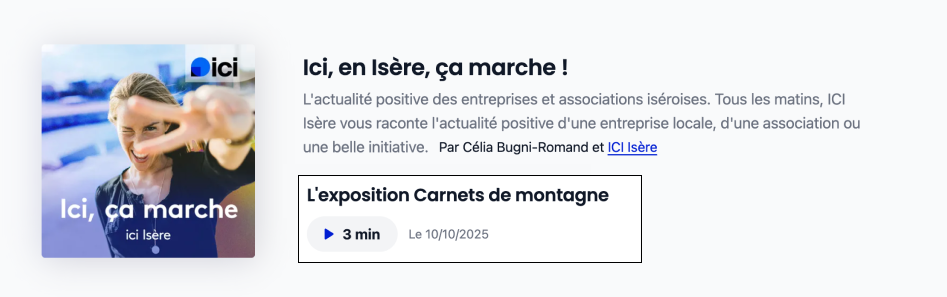 Vendredi 10 octobre matin, dans la chronique “Ici, en Isère, ça marche !”, Célia Bugni-Romand va mettre en lumière le projet qu’on porte avec Laura depuis plusieurs mois : une expo légère, nomade et pleine d’histoires de transition écologique en montagne, qui se balade de village en village dans les massifs ! ⛰️